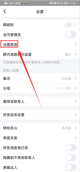 6、在该设置页面中,我们可以看到”设置禁言“的按钮,点击该按钮就可以对该群成员设置禁言操作。