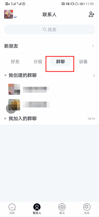 1、打开手机QQ软件主界面,然后在手机QQ软件主界面中点击选择“群组”选项,打开手机QQ群列表页面。