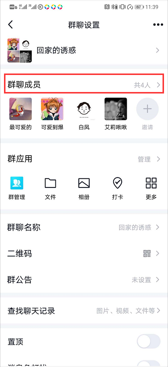 3、进入手机QQ群聊天页面之后,点击页面右上角按钮,打开QQ群信息页面,在信息页面中我们可以查看到QQ群中的所有的群成员。