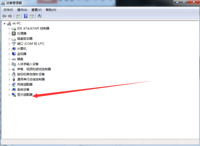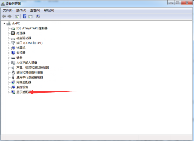 3、然后在设备管理器中,选择显示适配器,这就是常说的显卡了,在显示适配器子菜单中显示的就是本机的显卡了。