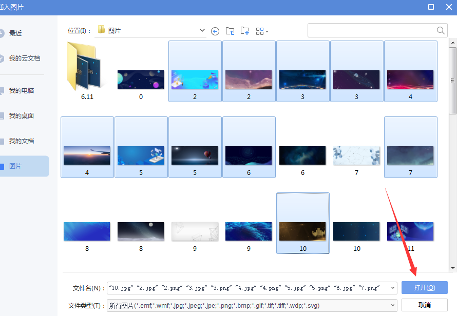 4、在电脑里面选择需要的照片,点击打开命令即可。