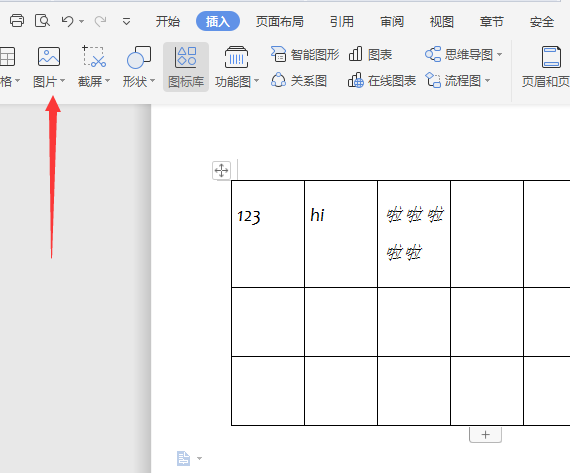 3、接着在插入的目录下面找到图片,点击图片这个选项。