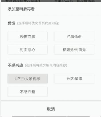 2、在弹出的选项框中选中自己不喜欢的标签理由即可。
