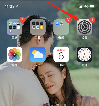 1、首先在手机桌面上找到设置并点击它。