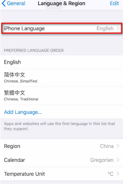 以英文版为例,其iPhone手机设置中文字体的方法如下: