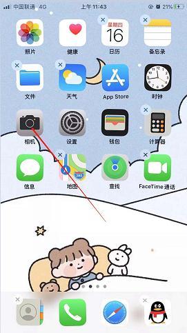 1、打开手机桌面,点击相机;