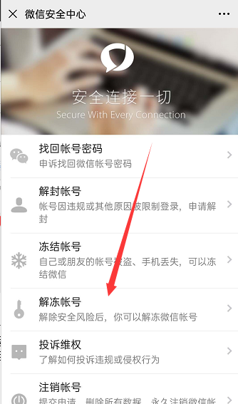 微信账号被冻结需要解冻。用户点开微信设置选择账号与安全,然后点击“微信安全中心”,进入微信安全中心页面,点击“解冻账号”,接着点击开始解冻即可。