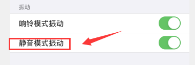 3、在“声音与触感”设置页面的震动设置中,即可看到iPhone手机的振动设置有两个开关,“响铃模式振动”和“静音模式振动”,打开“静音模式振动”即可。