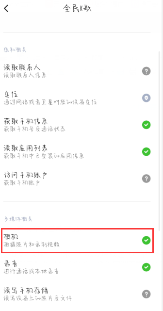 5、将【相机】权限标绿即可允许拍摄照片和视频。