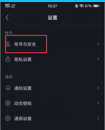 3、选择账号与安全。
