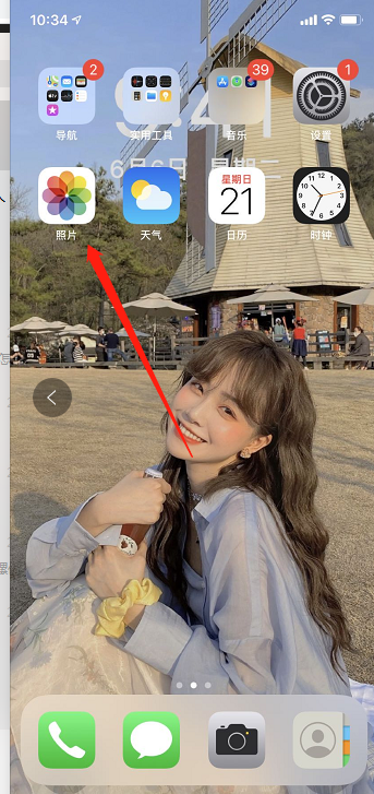 1、首先进入手机桌面中找到“照片”图片应用,然后点击进入手机相册界面。