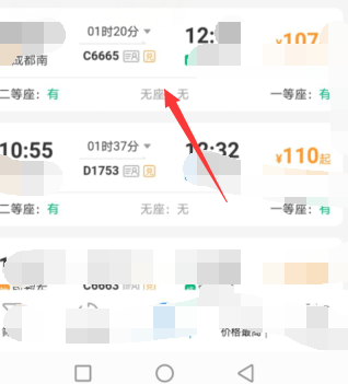 3、点击需要的一班车次。