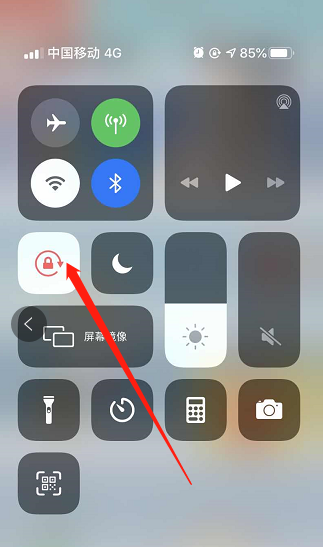 2、在控制中心界面,直接点击锁屏按钮,就可以打开屏幕旋转功能。