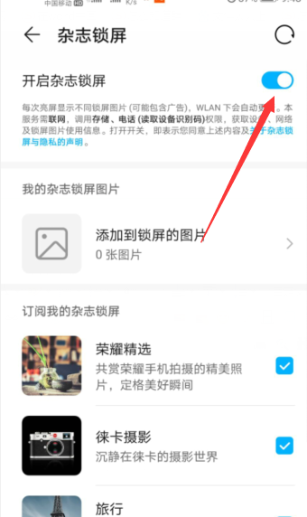 4、点击【开启杂志锁屏】后面的按钮即可。