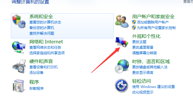 2、在控制面板中选择外观和个性化。