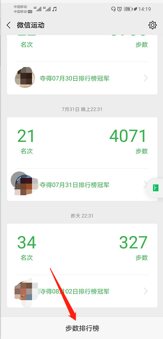 6、在微信中页面点击“步数排行榜”,进入微信好友部署排行榜界面。