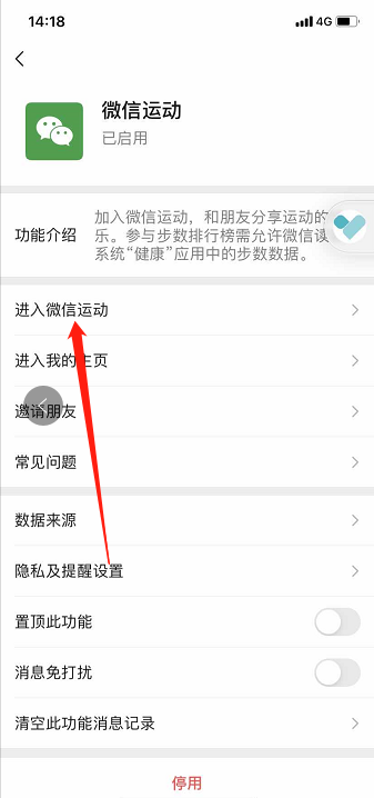 5、在微信运动功能页面,点击“进入微信运动”,进入微信运动详情页面。