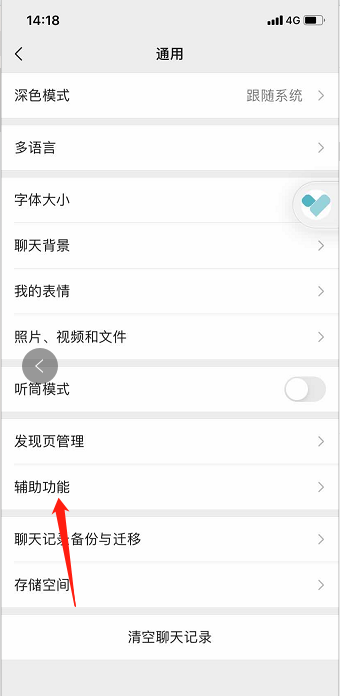 3、在通用界面点击“辅助功能”,进入辅助功能管理界面。
