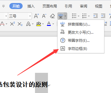 以Word为例,给字体加边框,只需要在【开始】菜单里点击【拼音指南】的下拉按钮,在弹出的二级菜单里,点击【字符边框】即可。