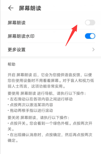4、点击屏幕朗读开关关闭即可。