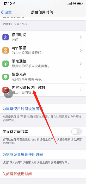2、滑动屏幕选项,找到【屏幕使用时间】。