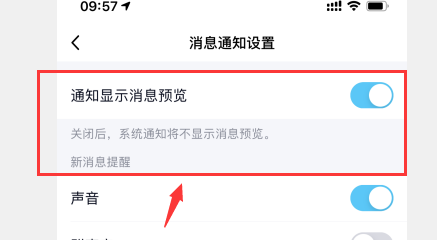 2、打开消息通知,点击“消息通知”选项,然后将“通知显示消息预览”选项关闭即可。