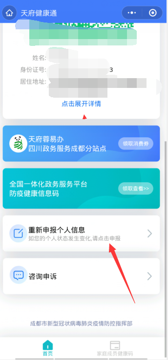 3、进入个人防疫信息码之后,往下拉选择重新申报个人信息即可。