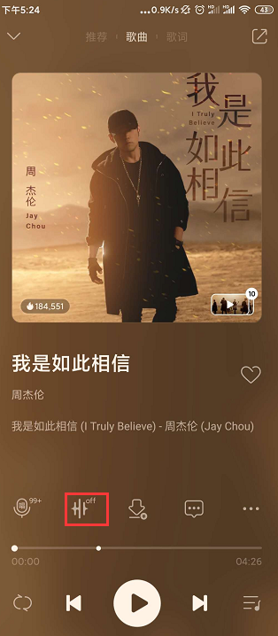 1、打开qq音乐APP,进入音乐播放界面,点击界面的音效开关。