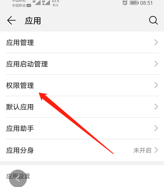 2、向上滑动设置界面,选择点击设置选项中的“权限管理”按钮;