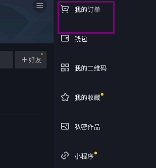 2、在个人设置页面,点击右上角,拉出个人设置详情,选择“我的订单”。