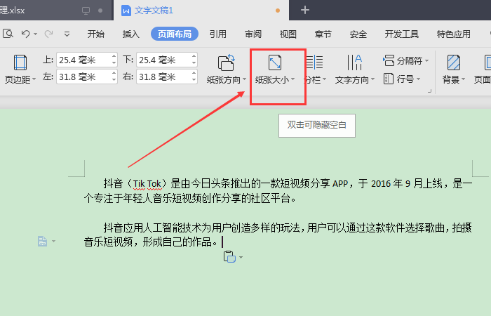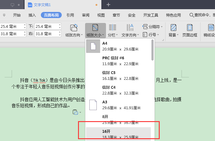 2、接着点击“纸张大小”,最后选择“16开”即可。