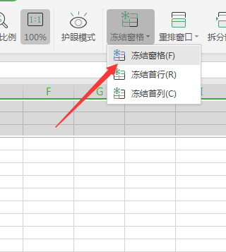 3、之后点击冻结窗口选项即可。