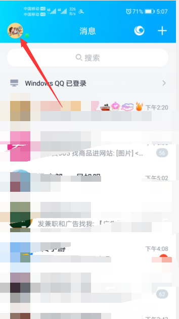 1、在手机上登录QQ,点击左上角的头像。
