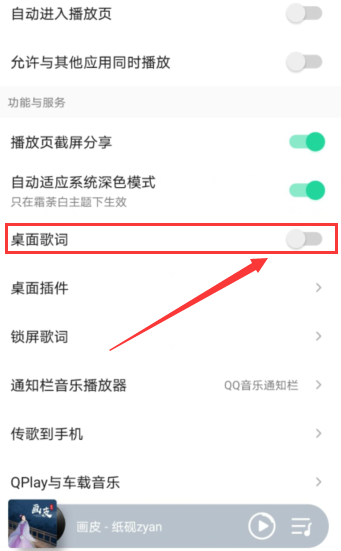 3、将桌面歌词开关打开即可。