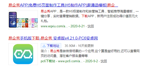 1、在电脑浏览器中搜索易企秀app。