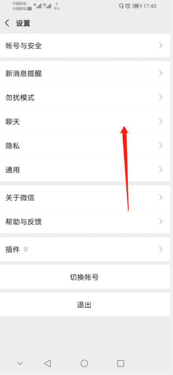 5、点击进入“聊天”,选择第一个“使用听筒播放语音”开启免提模式即可。