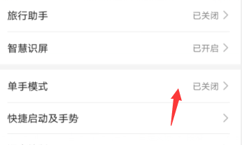 3、点击进入【单手模式】,将右侧的开关打开即可。
