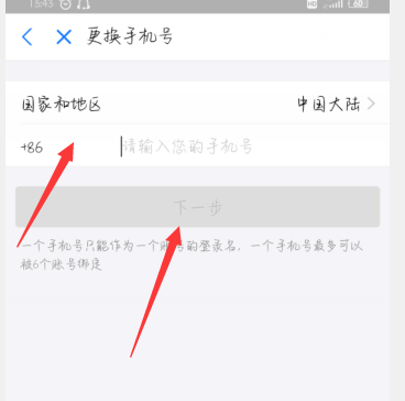 5、接着输入新的手机号,点击下一步,将新手机号收到的验证码输入并提交即可更换成功。