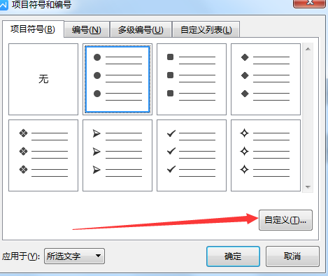 3、在项目符号下选择一种格式后,点击【自定义】。