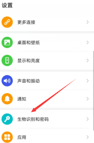 1、手机设置里,找到并点击【生物识别和密码】选项。