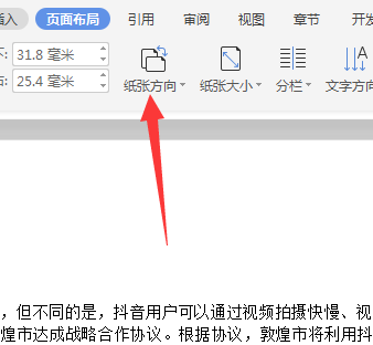 2、点击页面布局选项卡,在下面选择纸张方向。