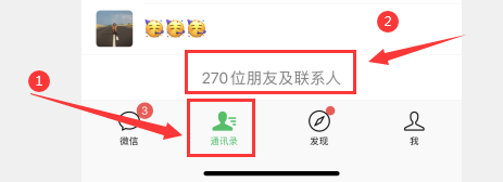 看微信好友人数的方法是打开微信,点击【通讯录】,拉到【最底部】,即可看到你的好友人数。