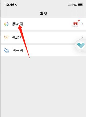 3、随后在发现页面,点击朋友圈选项;