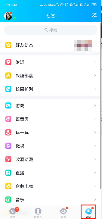 2、点击在“动态”界面。