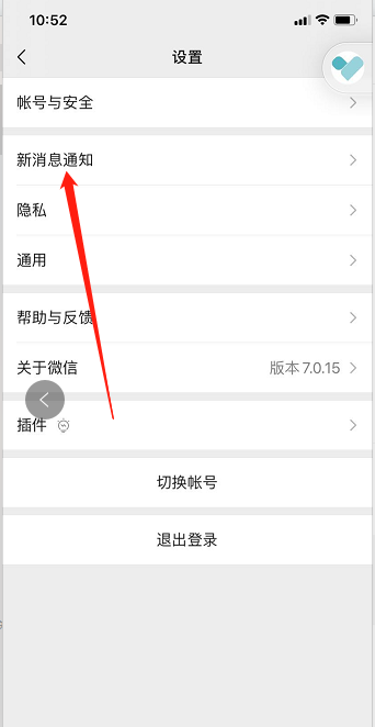 4、然后在微信的设置页面点击“新消息通知”选项;