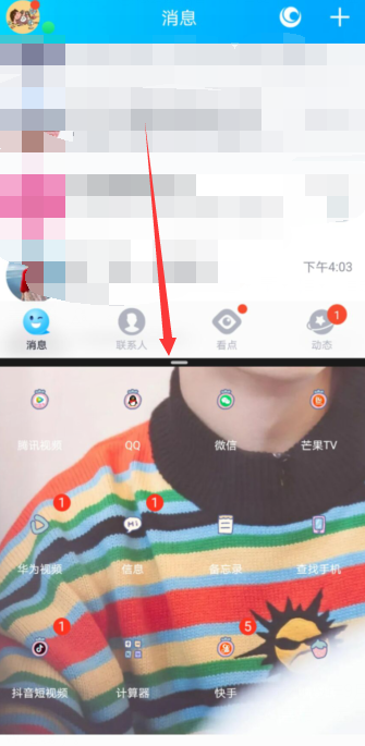 1、长按虚拟导航键的多功能键,直到取消分屏即可。