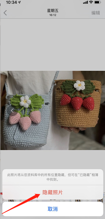 5、这时候就会弹出一个再次确认的选择框,如果已经确定要隐藏这张照片,就可以直接点击红色字体“隐藏照片”的选择项,就能够将选中的照片隐藏了。