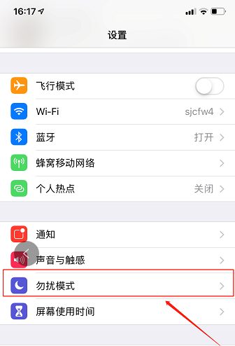 2、进入到设置界面后,找到“勿扰模式”并进入到“勿扰模式”功能设置界面。