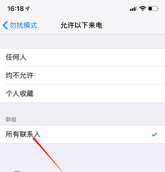 4、想要想防止所有陌生电话骚扰,直接选择所有联系人即可屏蔽一切不是通讯录好友的电话来电。