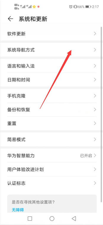 3、点击【系统导航方式】。